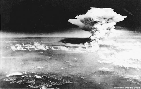 「きのこ雲」1945年(昭和20年)8月6日午前8時15分。世界で最初の原子爆弾が広島に投下されました。投下から43秒後、地上約600メートルの上空で閃光(せんこう)を放って炸裂。1秒後には最大直径280メートルとなり、地表面の温度は3000〜4000度に到達。12月末までに約14万人が死亡したと推計されています。(米軍撮影、広島平和記念資料館提供)